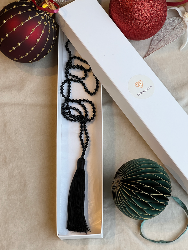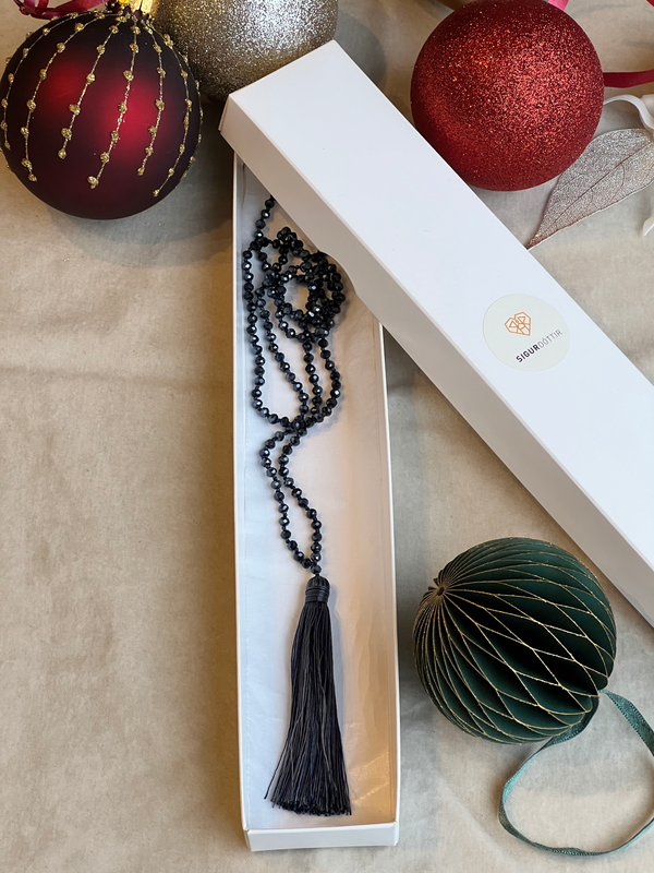 Handcrafted Dark Blue Glass Necklace with Tassel